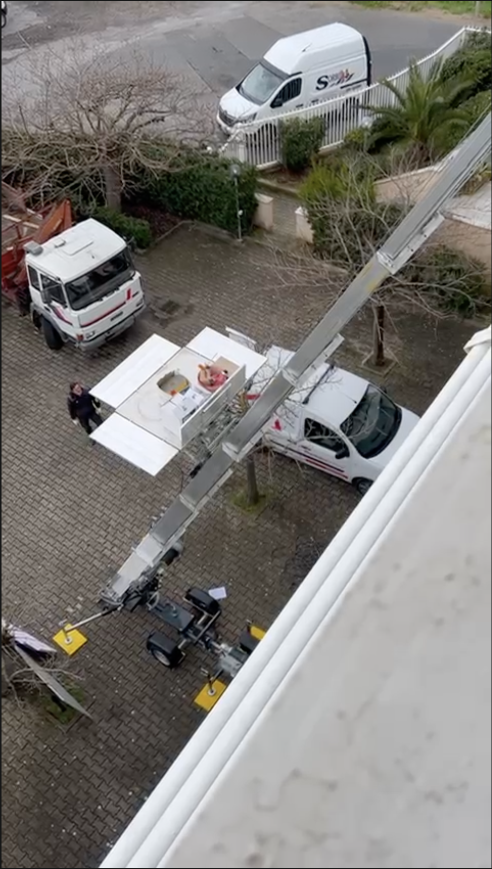 Niente montacarichi fissi, niente impalcature complesse: arriviamo sotto casa tua, montiamo il sistema in pochi minuti e portiamo su tutto quello che serve.