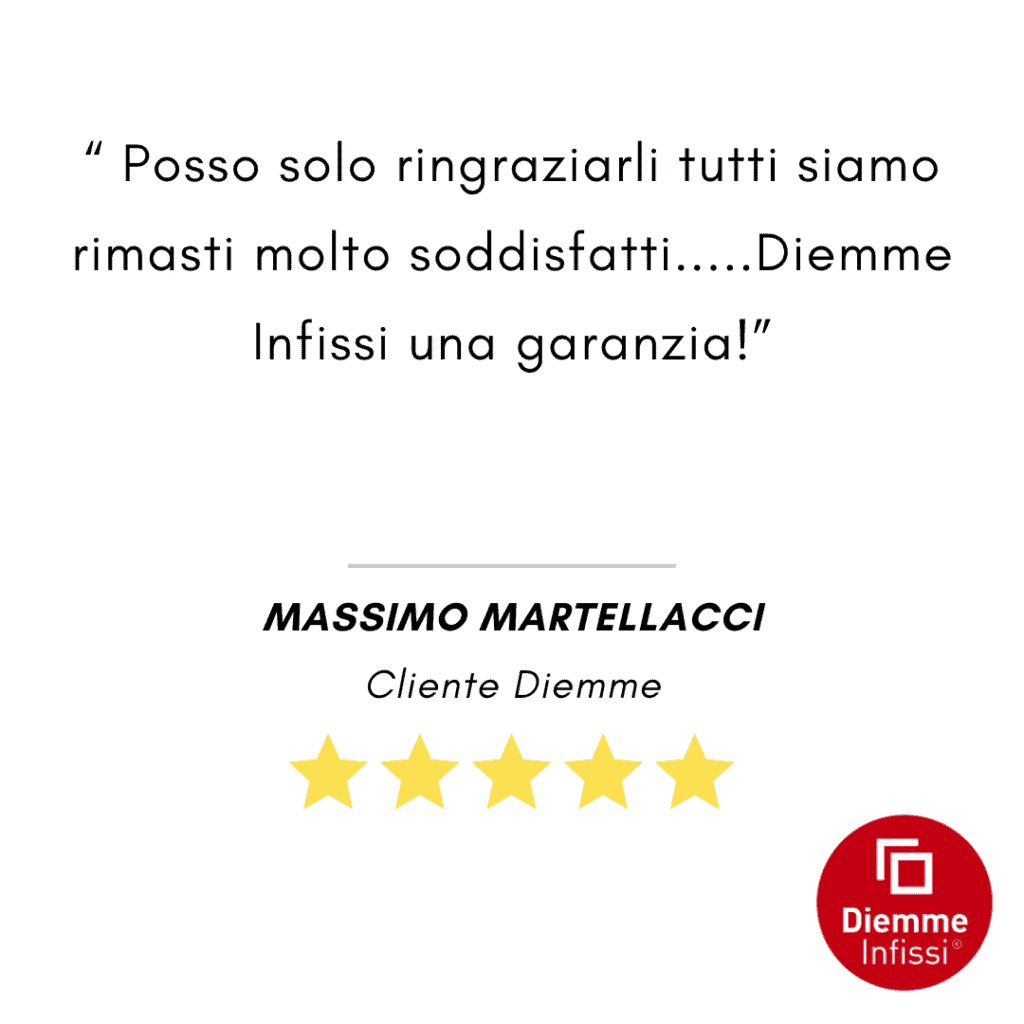 Migliaia di famiglie hanno già scelto Diemme per i loro infissi e ci hanno dato fiducia per la loro casa. Leggi le recensioni dei nostri clienti. -